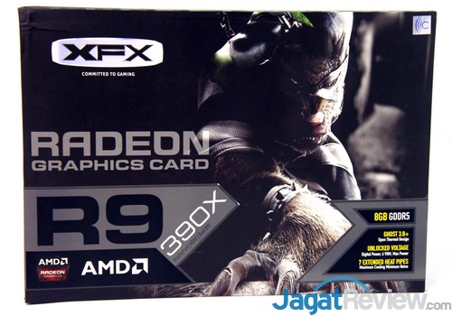 Kemasan dari graphics card ini terlihat berbeda dengan kemasan XFX sebelumnya. XFX mencoba menggunakan sebuah karakter yang mungkin sebuah Inhuman Assasin untuk menggambarkan kemampuan dari graphics card ini.