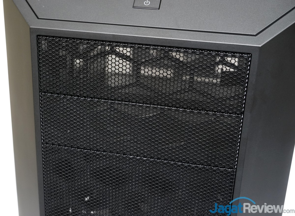Bagian depan casing MasterCase 5 ini menggunakan aluminium-mesh yang tentunya membuat hampir seluruh permukaan bagian depan casing ini berfungsi sebagai ventilasi udara. Ini diharapkan dapat mendukung banyaknya volume udara yang dapat masuk dari bagian depan casing ini.