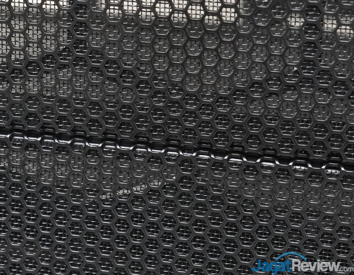 Di balik aluminium-mesh bagian depan casing MasterCase 5 ini, terdapat filter penyaring debu yang berfungsi untuk mengurangi jumlah partikel debu yang dapat masuk ke dalam casing ini.