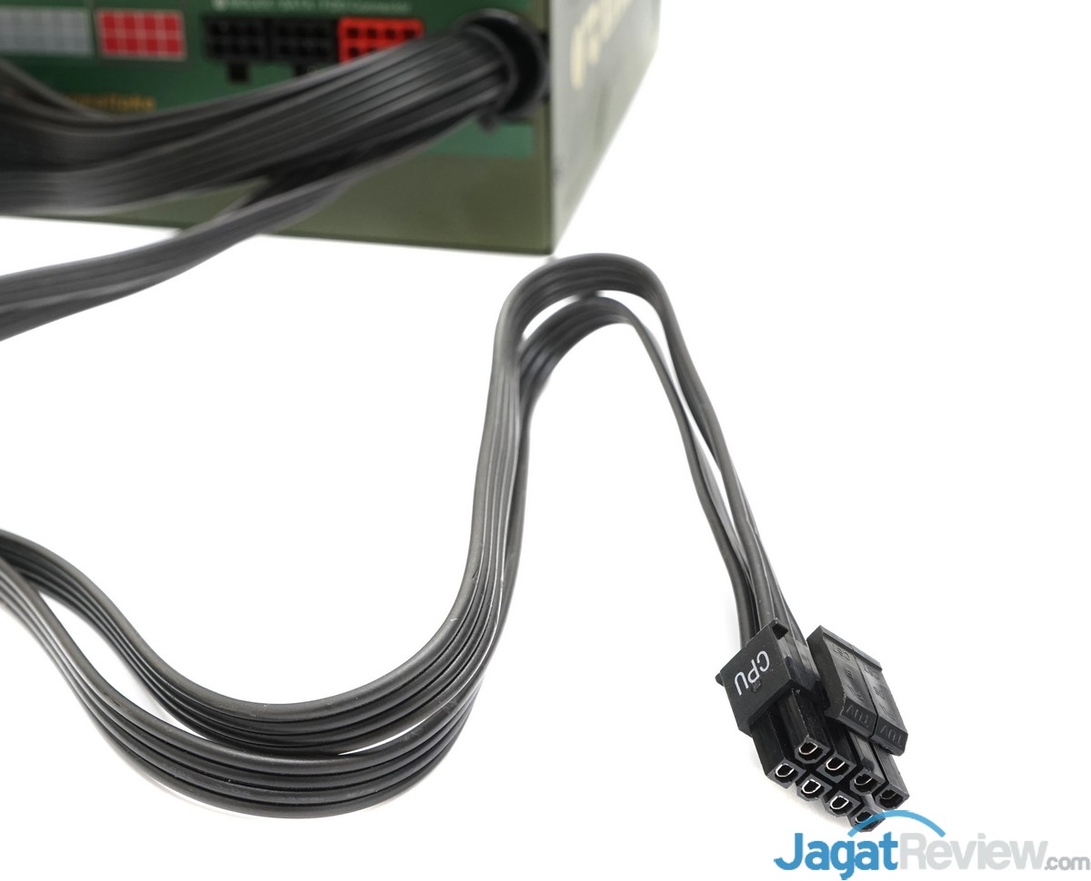 PSU ini menggunakan desain single-rail 12V+, sehingga pengguna tidak dipusingkan lagi terhadap perhitungan keseimbangan daya pada setiap kabel konektor.