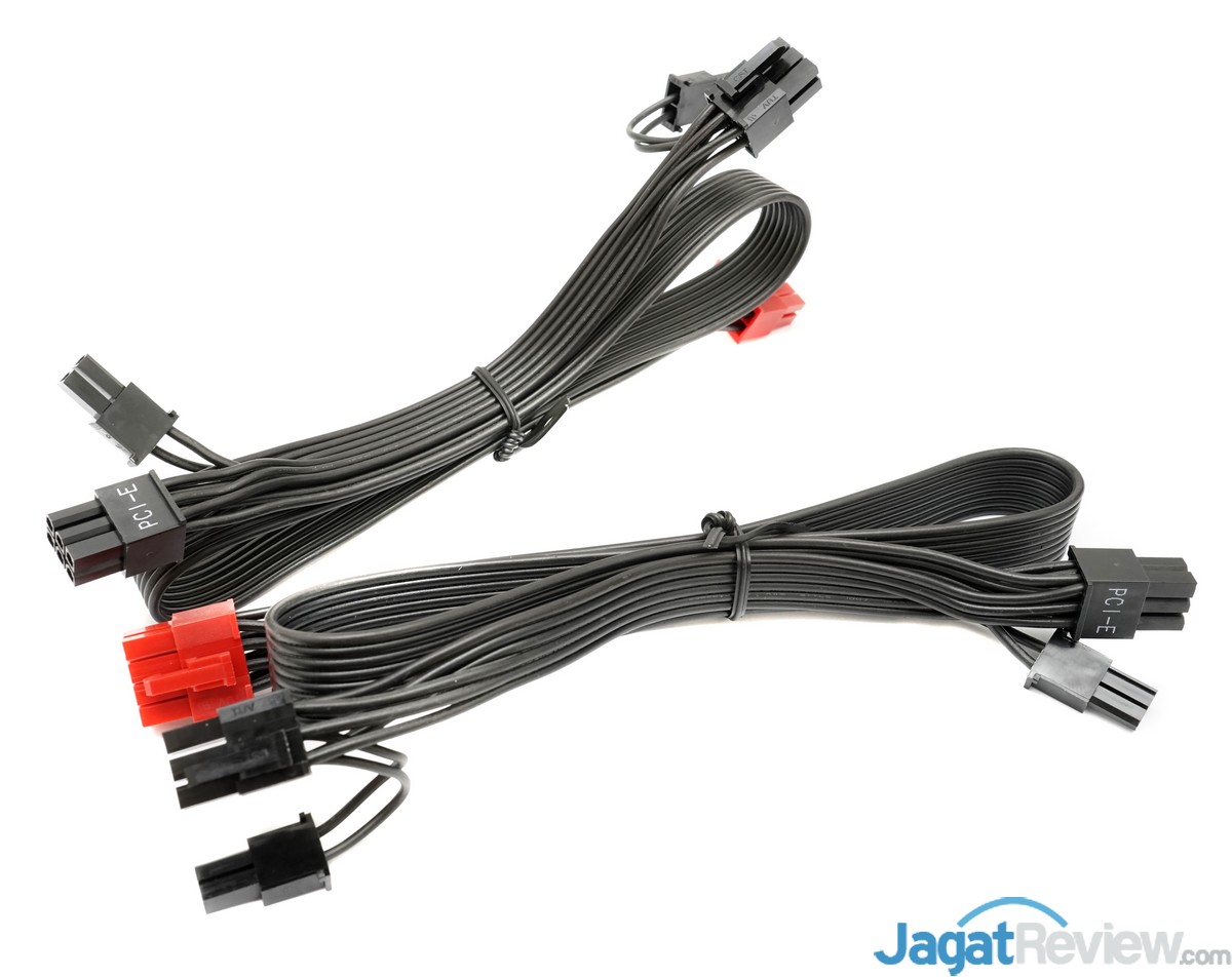Thermaltake Evo Blue 2.0 dilengkapi 2 kabel modular PCIe untuk VGA card yang masing-masing memiliki 2 konektor power 6+2 pin.