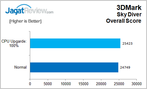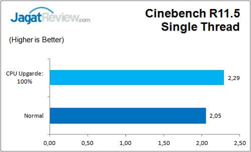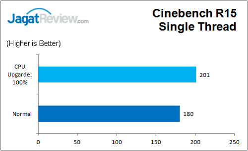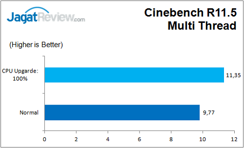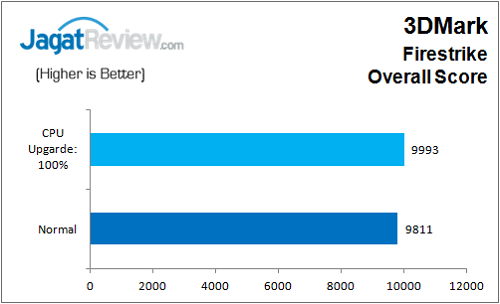 Pengujian kali ini dilakukan dengan membandingkan dua kondisi; mode Normal dan mode Upgrade CPU 100%. Mari kita lihat apakan kedua profile ini menunjukan perbedaan?