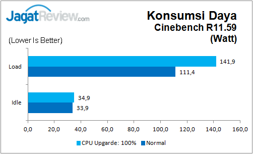 Pengukuran untuk kondisi full load dilakukan dengan membebani sistem dengan aplikasi Cinebench R11.59 dan game Lost Planet 2. Sedangkan pengukuran untuk kondisi idle dilakukan dengan membuat sistem tidak melakukan aktifitas selama sekitar 10 menit.