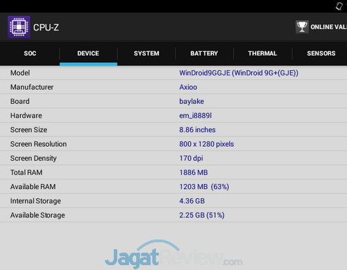 Layar IPS 8.9 inci dengan resolusi 1280×800 memang bukan yang paling tajam di ranah tablet saat ini. Meski begitu, layar tersebut sudah sangat mencukupi untuk memfasilitasi berbagai kebutuhan. Untuk produktivitas misalnya, Anda masih dapat mengerjakan tugas-tugas kantor atau kuliah dengan nyaman. Sayangnya layar Windroid 9G+ ini tidak memiliki fitur auto brightness.