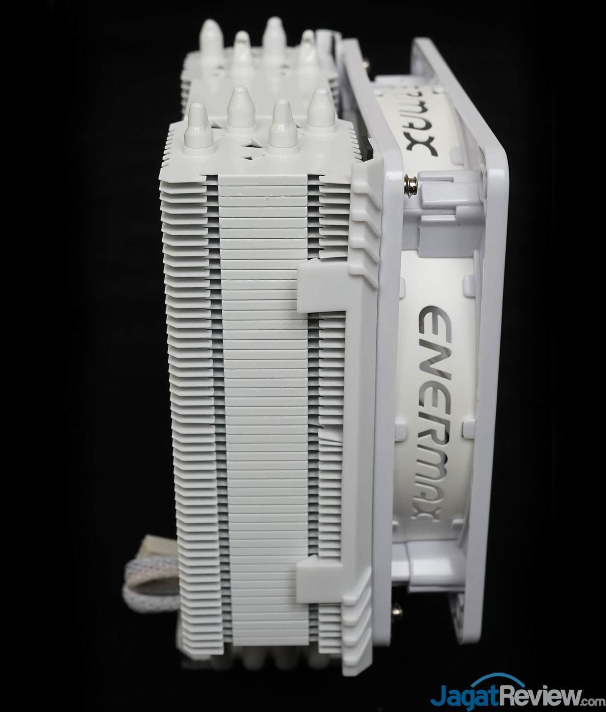 Di bagian sampingnya dapat terlihat jelas bahwa HSF Enermax ETS-T40fit White Cluster ini memiliki desain yang lebih slim atau lebih tipis dibandingkan seri pendahulunya.