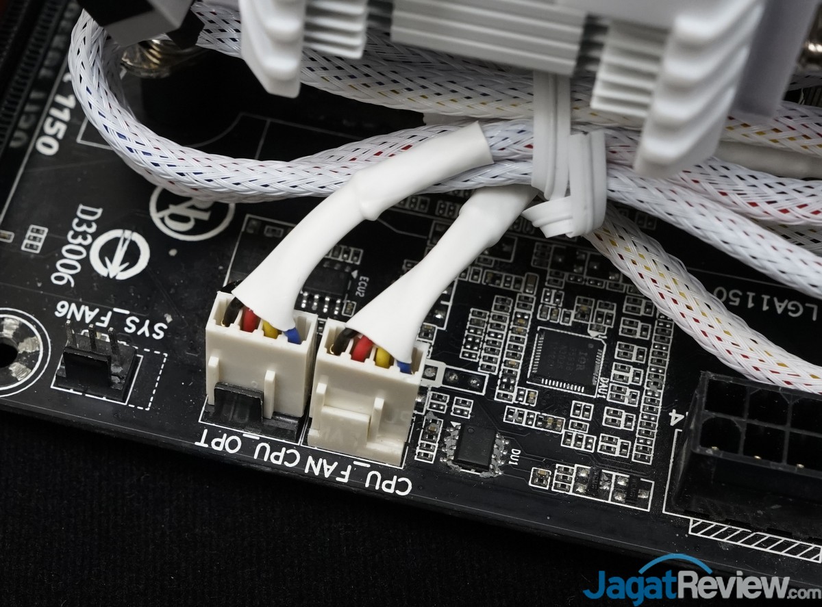Agar dapat memasang HSF ini, kami harus melepaskan terlebih dahulu fan pendingin yang telah terpasang pada HSF Enermax ETS-T40fit White Cluster. Lalu, posisikan HSF pada prosesor dan bracket pengunci HSF, lalu kunci secukupnya saja.