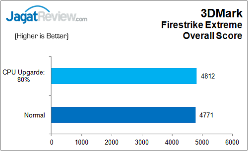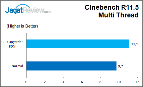 Pengujian kali ini dilakukan dengan membandingkan dua kondisi; mode Normal dan mode Upgrade CPU 80%. Mari kita lihat apakan kedua profile ini menunjukan perbedaan?