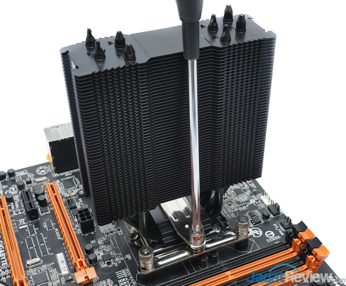 Peringatan: Kami tidak menyarankan pengguna HSF ini untuk mengunci habis bracket pengunci HSF ini. Karena Mounting HSF ini dapat memberikan pressure yang berlebihan pada prosesor dan motherboard ketika dikunci habis sepenuhnya. Hal ini dapat menyebabkan motherboard mengalami BENDING dan dapat meyebabkan performa pendinginan menjadi kurang optimal akibat tekanan yang berlebihan (Over-Pressure).