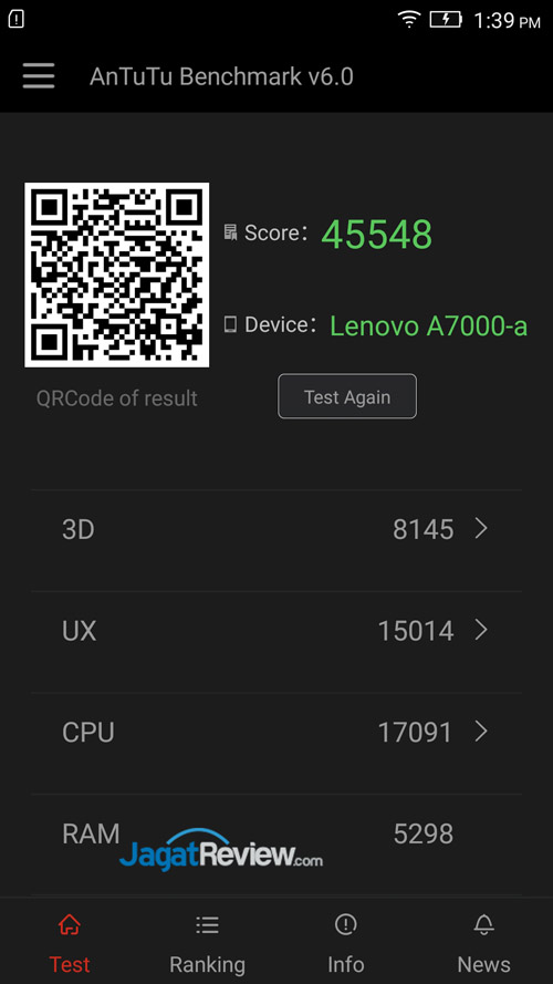 Berdasarkan hasil benchmark diatas, terbukti bahwa Lenovo A7000 Plus memberikan performa yang cukup tangguh untuk kebutuhan sehari-hari seperti browsing, writing, dan multimedia. Lenovo A7000 Plus juga punya performa grafis yang baik, sehingga cukup mengakomodir untuk bermain game-game mobile populer