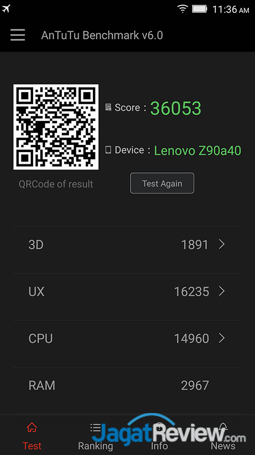 Untuk menguji performa dari Lenovo VIBE Shot, kami melakukan serangkaian performace test dengan beberapa aplikasi benchmark. Bechmark yang kami gunakan dalam pengujian ini antara lain AnTuTu, Geekbench, 3DMark, dan PCMark. Dan berikut adalah hasil benchmark yang kami lakukan menggunakan empat jenis aplikasi tersebut.