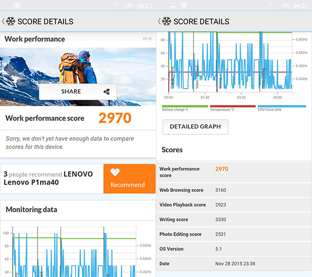 Untuk menguji performa dari Lenovo Vibe P1m, kami melakukan serangkaian performace test dengan beberapa aplikasi benchmark. Bechmark yang kami gunakan dalam pengujian ini antara lain AnTuTu, Geekbench, 3DMark, dan PCMark. Dan berikut adalah hasil benchmark yang kami lakukan menggunakan empat jenis aplikasi tersebut.
