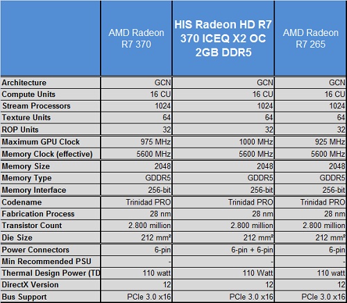 Radeon R9 370 memiliki clock GPU sebesar 975 MHz, sedangkan memori clocknya berjalan pada kecepatan 1400 MHz. Untuk graphics card ini, HIS menambahkan 25 MHz untuk clock GPU nya menjadi 1000 MHz. Sedangkan Memory clocknya tetap berada pada kecepatan 1400 MHz. Sayangnya HIS tetap mempertahankan besaran memorinya di angka 2GB. Meski bukan suatu kekurangan, mungkin 4GB terlihat lebih menarik untuk mata konsumen.