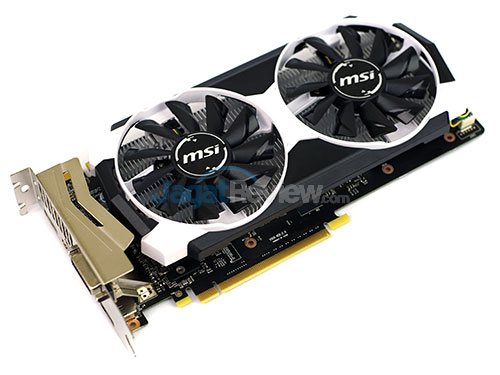 Beralih kebagian belakang, MSI membiarkan bagian PCB belakang graphic card ini tetap terbuka, tanpa backplate. Memang bukanlah suatu kerugian, namun mengingat ukurannya yang lebih panjang dari graphic card berbasis GTX 950 kebanyakan, akan menjadi sangat positif jika tersedia.