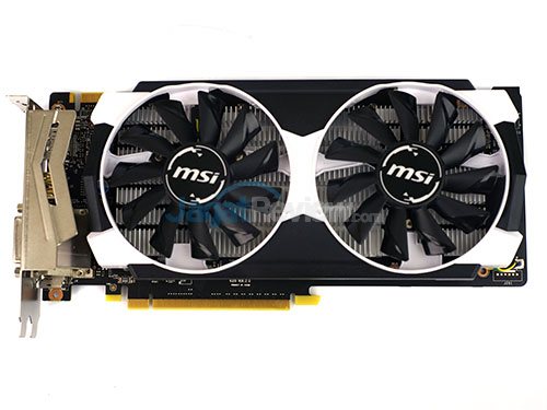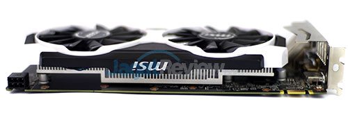 Sayangnnya, meski hadir dengan base clock cukup tinggi, di angka 1100 MHz, sepertinya MSI kurang serius untuk menyematkan heatsink yang lebih baik pada graphic card ini.Ya, graphic card ini hanya menyematkan sebuah heatsink alumunium sederhana. Meski ukurannya cukup besar, absennya heatsink dengan ber-heatpipe tembaga mungkin akan menjadi kendala tersendiri dari graphic card ini.