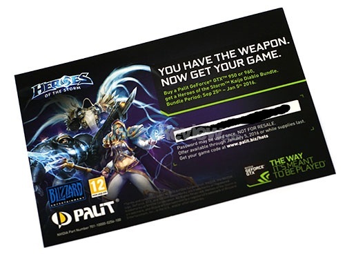 Menariknya, jika Anda tak menemukan sesuatu yang spesial pada fisik graphic cardnya, berbeda dengan paket penjualannya. Selain mendapatkan manual book dan CD Driver, Anda juga akan mendapatkan secara cuma-cuma karakater maupun senjata secara gratis untuk game Heroes of The Storm dengan me-redeem key yang tersedia dalam kemasan penjualan.