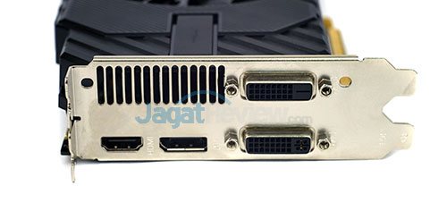 Mengingat graphic card ini hadir dengan spesifikasi yang tak jauh berbeda dengan spesifikasi reference NVIDIA, kami rasa penggunaan konektor daya PCIe 6-pin cukup untuk menangani graphi card ini.
