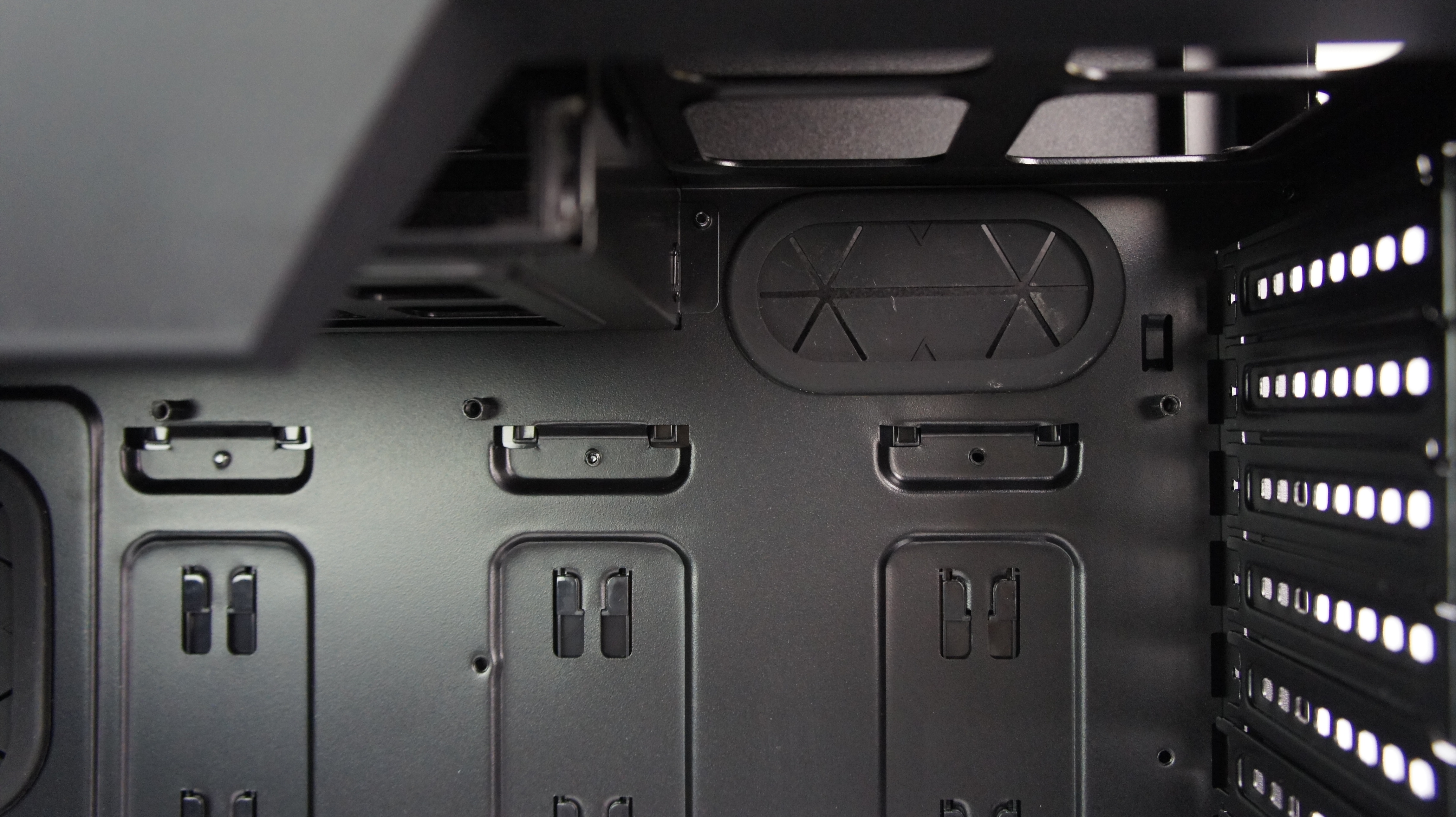 Sementara di bagian dasar, terdapat lubang ventalasi untuk penempatan berbagai ukuran radiator water cooling, atau kipas pendingin tambahan. Bagian ini juga dilengkapi juga dengan dust filter, yang untuk melepasnya juga sangat mudah dilakukan.