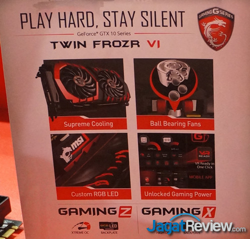 Salah satu yang menarik dari booth MSI kali ini adalah bagaimana MSI memamerkan begitu banyak macam dari produk GeForce GTX 1080 mereka. Beberapa produk ini masih belum memiliki spesifikasi clockspeed yang sudah dipastikan, mari lihat penampilan beberapa VGA tersebut: