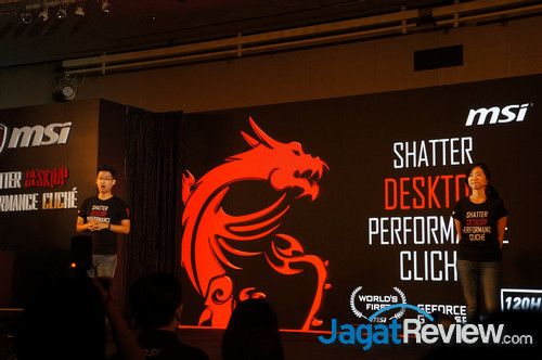 Dengan tema acara ‘Shatter Desktop Performance Cliché‘, MSI menunjukkan bahwa solusi GTX 10 Series ini sebegitu powerful-nya, untuk bisa menghadirkan performa 40% di atas generasi sebelumnya, dan membuat performa-nya setara dengan VGA desktop model serupa.