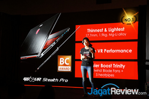 MSI juga menambahkan bahwa GeForce GTX 10 series masih bisa masuk ke form factor yang menarik – seperti notebook tipis MSI GS63 VR. Ini disebabkan karena dukungan GPU dengan TDP rendah, serta pendingin Cooler Boost Trinity.