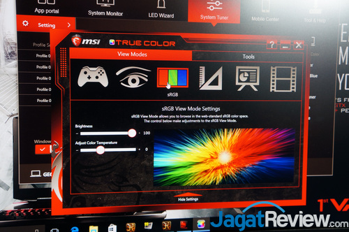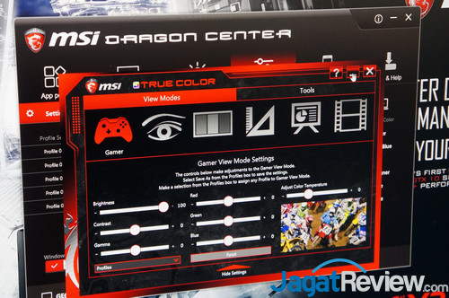 MSI pun masih memberikan opsi untuk melakukan fine-tuning warna lewat panel ‘True Color’ untuk mendapat akurasi warna sesuai yang diinginkan pengguna.