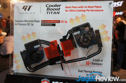 MSI pun sempat mendemokan Cooler Boost Titan mereka, yang diklaim untuk masih bisa menjalankan prosesor Core i7-6820HK dan kartu grafis GTX 1080 dan masih menjaga suhu prosesor maksimal mereka di bawah 80 C saat stress test.