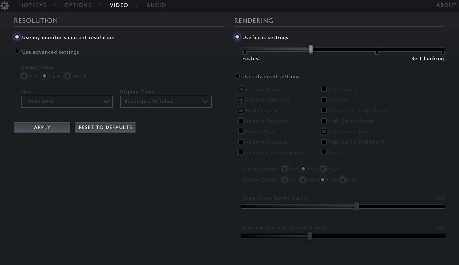 Setting (preset Best Looking, 1920×1080)