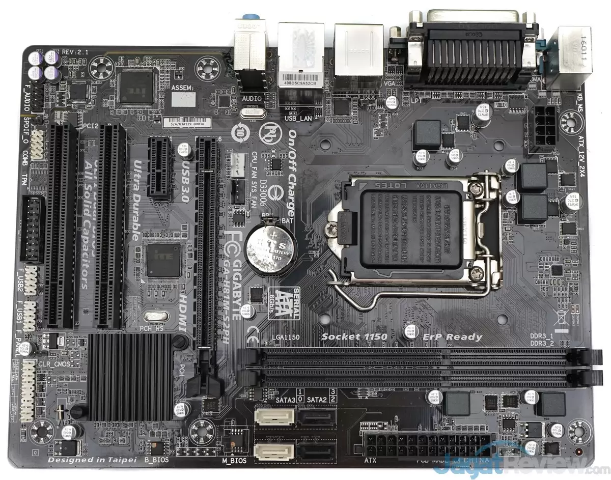 Jika dilihat lebih teliti lagi, memang motherboard Gigabyte H81M-S2PH ini memang tidak sepenuhnya 100% bebas dari korosi, terutama pada bagian pengunci socket LGA, baterai CMOS, logam penutup back-panel USB 3.0 dan segelintir komponen SMD yang memang tidak mendapatkan perlindungan lapisan coating “New Glass Fabric PCB”.