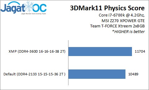 Menggunakan aplikasi benchmark yang cukup memory-intensive seperti 3DMark11 Physics, dan Geekbench 3(Memory Score), kami melakukan pengukuran performa pada Team T-FORCE XTREEM sebagai berikut: