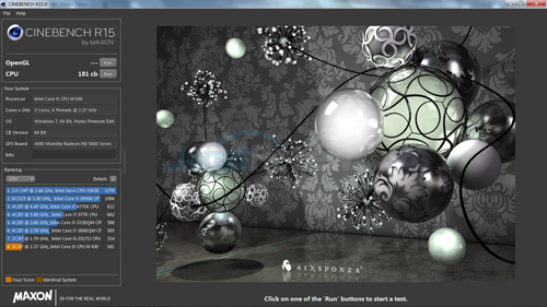 Cinebench R15 merupakan aplikasi benchmark untuk mengukur kemampuan prosesor atau graphics card saat melakukan rendering sebuah objek 3D. Hasil pengujian disajikan dalam bentuk skor. Semakin tinggi skor yang dihasilkan, berarti semakin cepat pula PC Anda melakukan operasi rendering. Kami mengambil 2 (dua) skor, yakni dengan konfigurasi Multi-Core untuk melihat performa multi-threaded, dan juga konfigurasi Single-Core untuk melihat performa single-threaded.