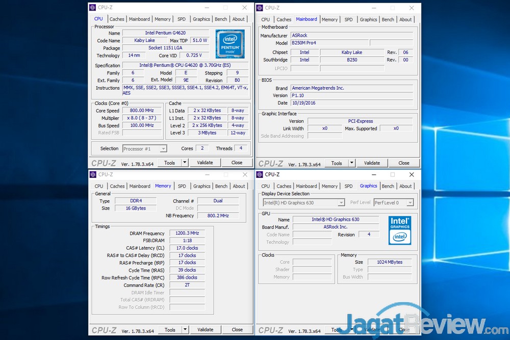 Sebagai catatan, RAM yang kami gunakan, Apacer Blade Fire DDR4-3200 2x 8 GB, menawarkan konfigurasi kecepatan hingga 3200 MHz. Namun, karena keterbatasan dukungan memori dari Pentium G4620, yang hanya mendukung DDR4-2133 dan DDR4-2400, kami tentu saja tidak bisa menjalankan RAM tersebut di kecepatan maksimalnya. Untuk pengujian kali ini, RAM tersebut hanya berjalan di kecepatan 2400 MHz, yang merupakan kecepatan maksimal yang secara resmi didukung oleh Pentium G4620.