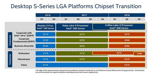 Chipset H370 memiliki fitur yang akan sangat identik dengan Z370, dengan perbedaan hanya pada tidak adanya dukungan CPU Overclocking dan PCIe Segmentation untuk Multi GPU. Untuk chipset B360 perbedaan yang mungkin diberikan adalah dipangkasnya opsi konektivitas, dan untuk H310 sebagai chipset entry-level dan tentu nya opsi konektivitas akan menjadi lebih sedikit daripada B360.