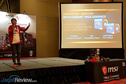 MSI, bersama distributor mereka untuk jajaran motherboard AMD, PT Alfa Artha Andhaya, menampilkan beberapa desktop dengan basis motherboard AM4 mereka serta APU Raven Ridge di acara tersebut. Desktop yang ditampilkan pun digunakan untuk menjalankan beberapa game dalam kondisi tanpa menggunakan graphics card diskrit. Hal itu memang dimungkinkan karena APU Raven Ridge mengusung integrated graphics berbasis arsitektur Vega. Performa yang ditawarkan Radeon Vega 8 di Ryzen 3 2200G dan Radeon RX Vega 11 di Ryzen 5 2400G memang bisa menjalankan berbagai game dengan baik, di resolusi hingga Full HD dan konfigurasi tertentu.