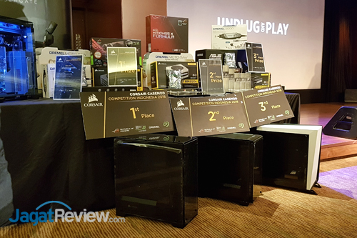 Di acara bertajuk “Unplug and Play”, Corsair juga memajang lima hasil terbaik dari Corsair Casemod Competition 2018. Nantinya, tim juri yang terdiri dari Bapak Bambang, wakil dari DTG, distributor Corsair; Waroq Ozel, modder ternama Indonesia; Remmi Wijaksana, dan Vivianna Cheryl akan menentukan karya mana yang berhak menjadi yang terbaik, dan mendapatkan hadiah utama senilai Rp 28 juta. Berikut ini adalah kelima hasil terbaik di kompetisi ini: