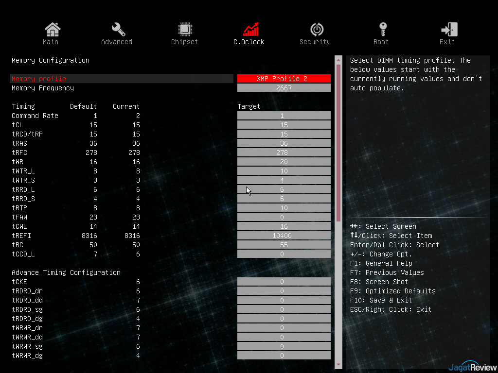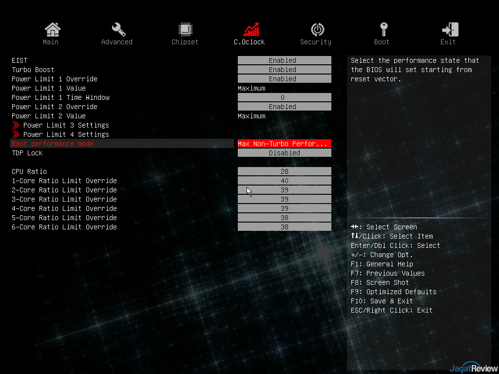 Motherboard ini juga cukup unik, karena masih memberikan opsi overclocking yang bisa diakses dari tab C.Oclock. Di tab menu ini Anda dapat mengakses Multicore Enhancement pada menu Boot Mode. Tidak hanya itu saja, motherboard ini juga menyediakan opsi overclocking memori untuk Anda jika ingin mencoba mendapatkan memori yang lebih kencang. Hanya saja, multiplier frekuensi memori hanya akan terbatas sampai dengan DDR4-2666.