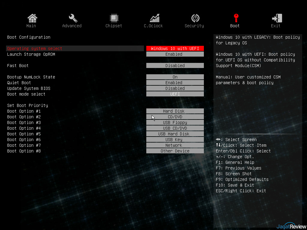 Di menu ini Anda dapat memilih konfigurasi boot sistem Anda. Anda juga bisa melakukan boot override bila dibutuhkan. Secara umum, BIOS di motherboard ini menyediakan opsi-opsi dasar dan lanjutan yang umum dibutuhkan di sebuah motherboard kelas menengah bawah, sesuai dengan posisinya.