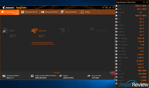 Utuility EasyTune ini juga memungkinkan pengguna mengakses System Monitoring Overlay. Beberapa informasi berguna terkait kondisi sistem bisa dilihat langsung di layar melalui overlay dari utility ini.