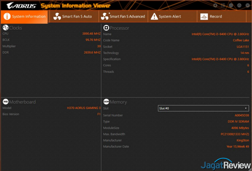 System Information Viewer: utility ini akan menampilkan informasi hardware dari sistem Anda seperti tipe prosesor, motherboard, memori, dan clock speed. Selain itu, fitur terpenting yang terdapat pada utility ini adalah akses ke SmartFan 5. Tool SmartFan 5 tersebut menawarkan akses untuk melakukan tuning kepada kecepatan fan speed menggunakan preset ataupun tuning manual.