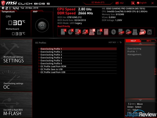 Tab Overclocking Profile: MSI menyediakan tab ini sebagai wadah pengguna menyimpan atau mengakses konfigurasi BIOS yang sudah disimpan sebelumnya