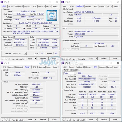 Berikut ini screenshot spesifikasi laptop tersebut berdasarkan informasi dari CPU-Z dan GPUz: