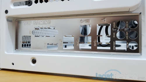 Beralih ke komponen selanjutnya, yaitu motherboard. Pemasangan motherboard di casing Corsair Carbide 275R ini tidak berbeda dengan pemasangan motherboard di casing mid-tower pada umumnya. Kita hanya perlu menyesuaikan dudukan motherboard dengan posisi lubang baut di motherboard, kemudian memasang I/O shield dari motherboard, dan memasang motherboard ke casing dengan baut yang tersedia di dalam paket penjualan. Secara standar, Corsair sudah memasang dudukan motherboard di tray motherboard casing ini, dengan posisi yang disesuaikan dengan lokasi lubang di motherboard ATX. Bila Anda menggunakan motherboard Micro-ATX atau Mini-ITX, ada baiknya memeriksa lagi posisi dudukan motherboard, menyesuaikannya bila perlu, dan melepas dudukan yang tidak digunakan.