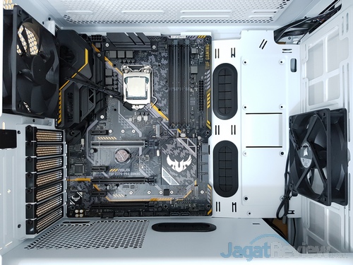 - Dukungan untuk watercooling dengan radiator hingga 360 mm