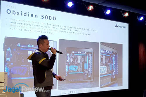 Bukan hanya gaming gear yang ditampilkan di acara Corsair kali ini. Mereka juga menampilkan beberapa produk baru dari jajaran non-gaming gear, yaitu dari lini casing, PSU, dan cooler. Untuk casing, Corsair menampilkan Carbide 275R dan Obsidian 500D. Carbide 275R, adalah casing kelas menengah yang hadir dengan tampilan minimalis dan side panel tempered glass. Sementara Obsidian 500D adalah casing premium dengan desain yang juga minimalis, juga dengan side panel tempered glass, serta mengusung berbagai fitur yang dibutuhkan untuk mendukung PC high-end masa kini, termasuk front panel USB 3.1 Type C.