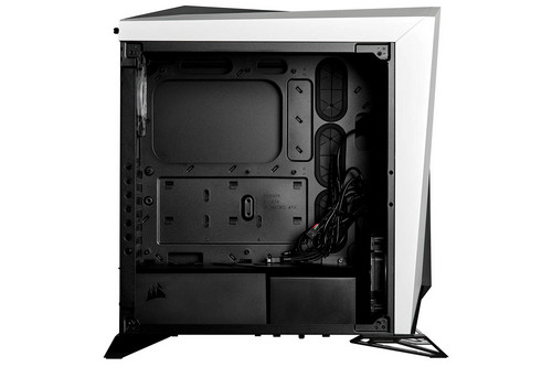 Corsair SPEC-OMEGA RGB ini akan hadir dalam dua pilihan warna, yaitu hitam dan putih. Untuk kedua pilihan warna itu, Corsair menyertakan tempered glass di sisi depan dengan desain yang asymmetric. Tidak hanya di depan, bagian samping kiri casing ini juga ditutup dengan tempered glass, yang membuat isi dari casing ini dapat ditampilkan dengan mudah. Belajar dari pengelaman sebelumnya, Corsair memberikan opsi removeable PSU cover untuk mempermudah instalasi. Tidak hanya itu, Corsair juga memberikan sangat banyak cutout untuk melakukan routing kabel. Terdapat juga rubber grommet untuk menutupi lekukan kabel pada ruang utama casing. Corsair memberikan 16 lubang untuk pemasangan cable ties. Semua ini dilakukan untuk menawarkan cable management yang baik.