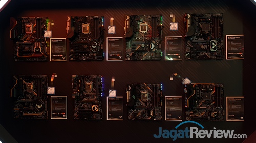 ASUS tentu saja tidak meninggalkan jajaran produk motherboard TUF Gaming mereka. Jajaran motherboard itu dipajang di satu sisi area booth yang memang dikhususkan untuk perangkat TUF Gaming. Memang, tidak ada motherboard yang benar-benar baru yang ditampilkan di sini. Namun, ada juga beberapa yang masih tergolong baru, karena menggunakan chipset yang baru rilis di tahun 2018 ini, seperti H310, B360, dan H370 dari Intel, serta X470 dari AMD.
