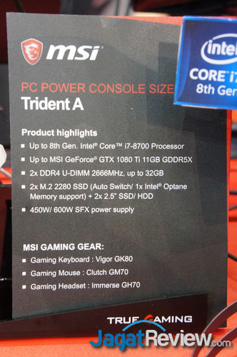 Selain Trident A, MSI juga memamerkan beberapa model gaming desktop yang sudah pernah ada sebelumnya, namun kali ini mereka semua mendapat ‘upgrade’ dan mengganti semua prosesor-nya ke 8th Gen Intel Coffee lake. Berikut penampilan dan spesifikasinya