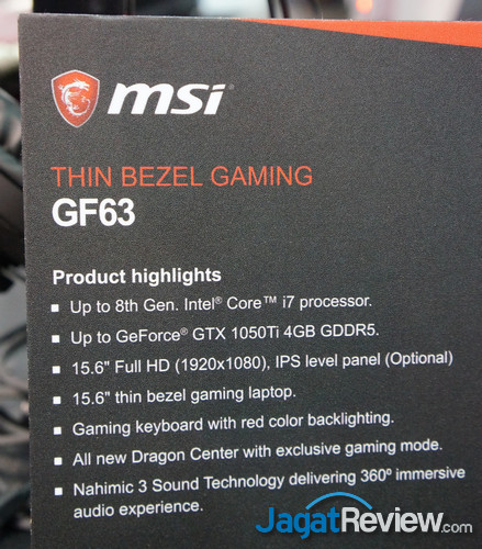 Produk yang kami lihat pada gaming series di MSI pertamakalinya adalah GF series, yang memiliki salah satu keunggulan seperti layar 15.6″ dengan thin bezel. Laptop GF Series ini diposisikan pada kelas menengah/mainstream, yang berarti di bawah GP series yang mengedepankan performa, dan di atas GL series yang mengedepankan value.