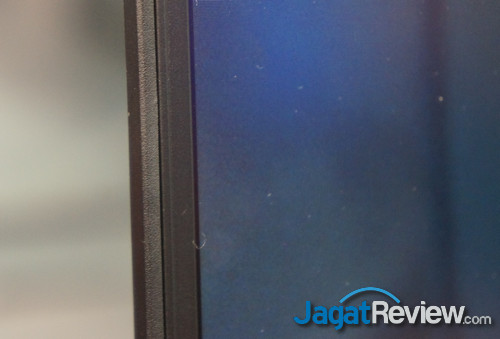 Seperti yang kami sebut di atas, salah satu poin kelebihan notebook ini adalah bezel-nya yang tipis, membuat area layar terlihat luas, dan bentuk fisik notebook-nya tidak terlampau ‘melebar’. Simak tampilannya berikut ini: