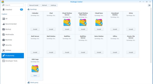 Sebagian besar package yang didukung DS218+ ini sebenarnya juga didukung oleh NAS Synology lain dari tingkat yang sama. Namun, sebagai NAS performa tinggi, DS218+ memiliki keunggulan tersendiri dalam hal kapasitas user yang didukung package. Misalnya, untuk Chat, NAS ini mendukung hingga 1000 user, sementara NAS Synology dari tingkat yang sama, tetapi bukan dikategorikan sebagai NAS performa tinggi, hanya mendukung hingga 10 user saja.