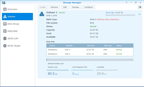 Synology Hybrid RAID sendiri disebut oleh Synology sebagai manajemen RAID secara otomatis, yang akan sangat cocok digunakan oleh pengguna awam yang ingin memanfaatkan storage di dalam NAS mereka secara optimal. Mode ini memang akan sangat membantu, karena tanpa pengetahuan dasar pun, seseorang akan bisa mendapatkan NAS dengan kapabilitas redundansi, yang memungkinkan data tidak langsung hilang begitu saja bila ada satu storage di DS218+ ini mati. Namun, untuk pengguna yang sudah mengenal betul konfigurasi dari NAS, tersedia juga opsi untuk konfigurasi manual, yaitu JBOD, RAID 0, dan RAID 1.
